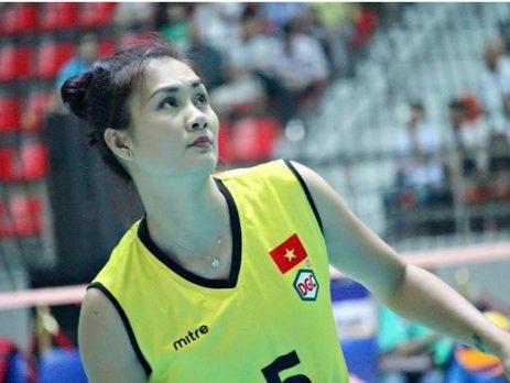 Cầu thủ bóng chuyền nữ cựu chiến binh Phạm Thị Kim Huệ, 35 tuổi, chào hàng đội tuyển quốc [...]